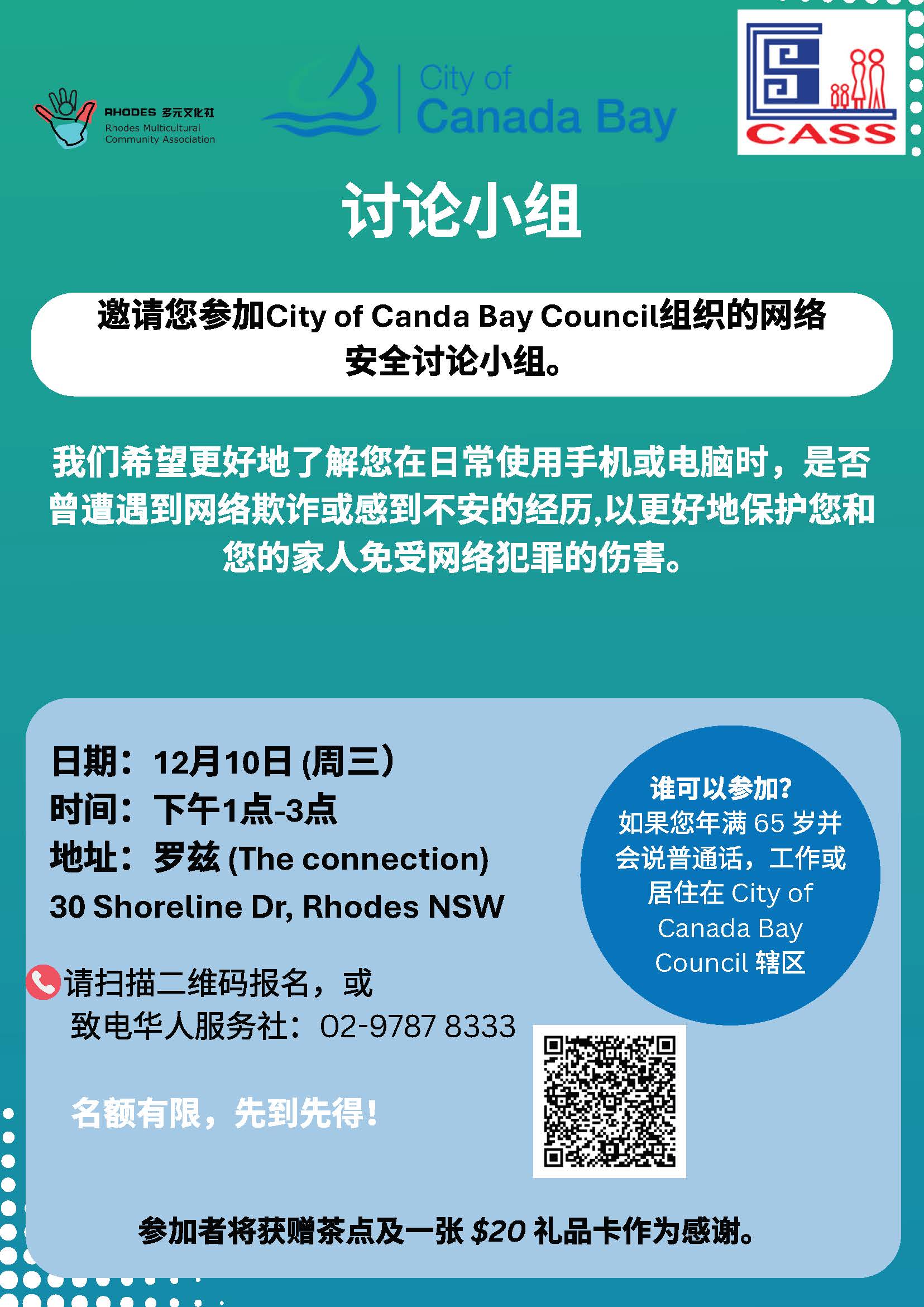City of Canada Bay Council再次聯合我們華人服務社及Rhodes Multicultural Community Association,將舉行網路安全討論小組。