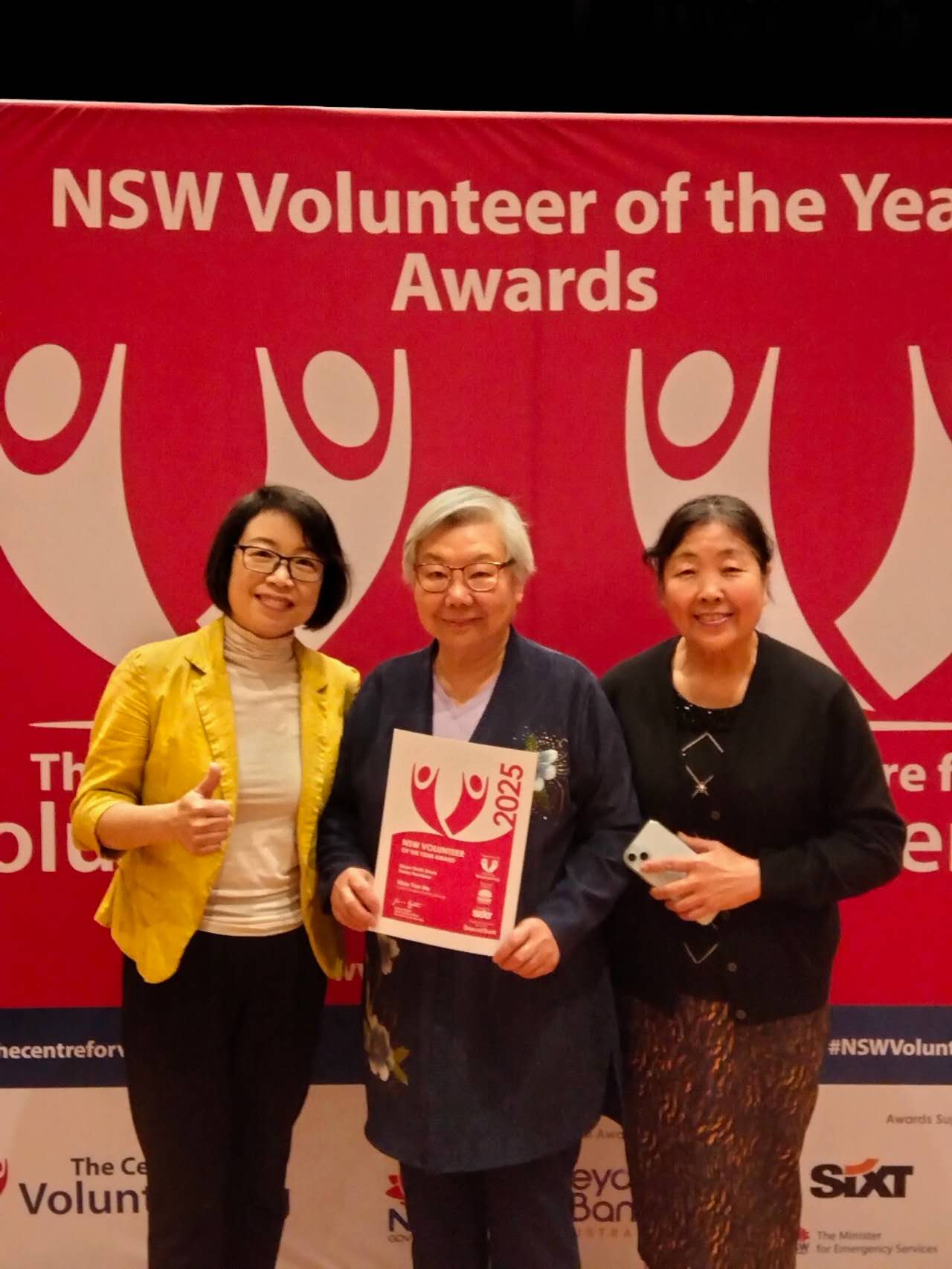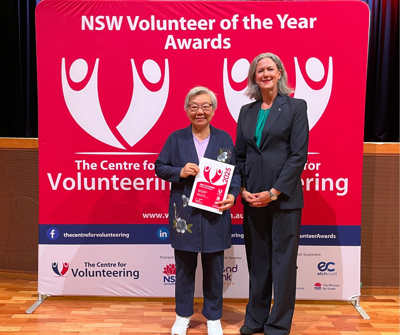 主辦機構The Centre for Volunteering CEO Gemma Rygate女士也在現場與她合影,表示祝賀。