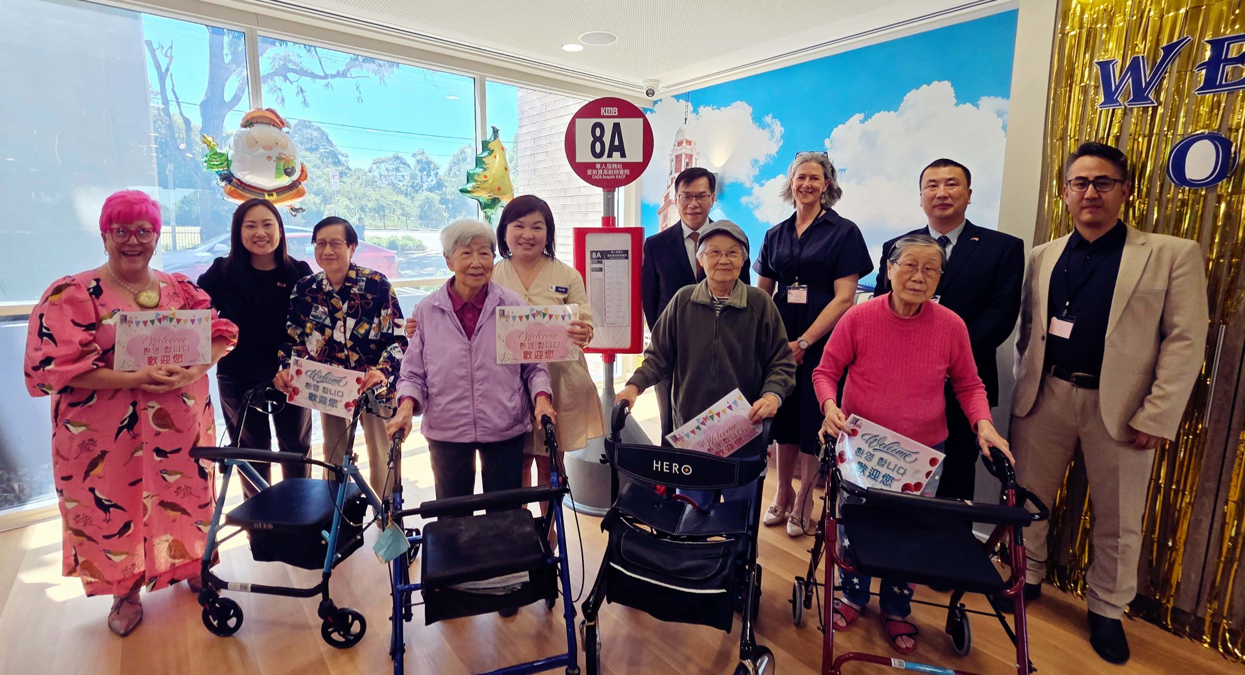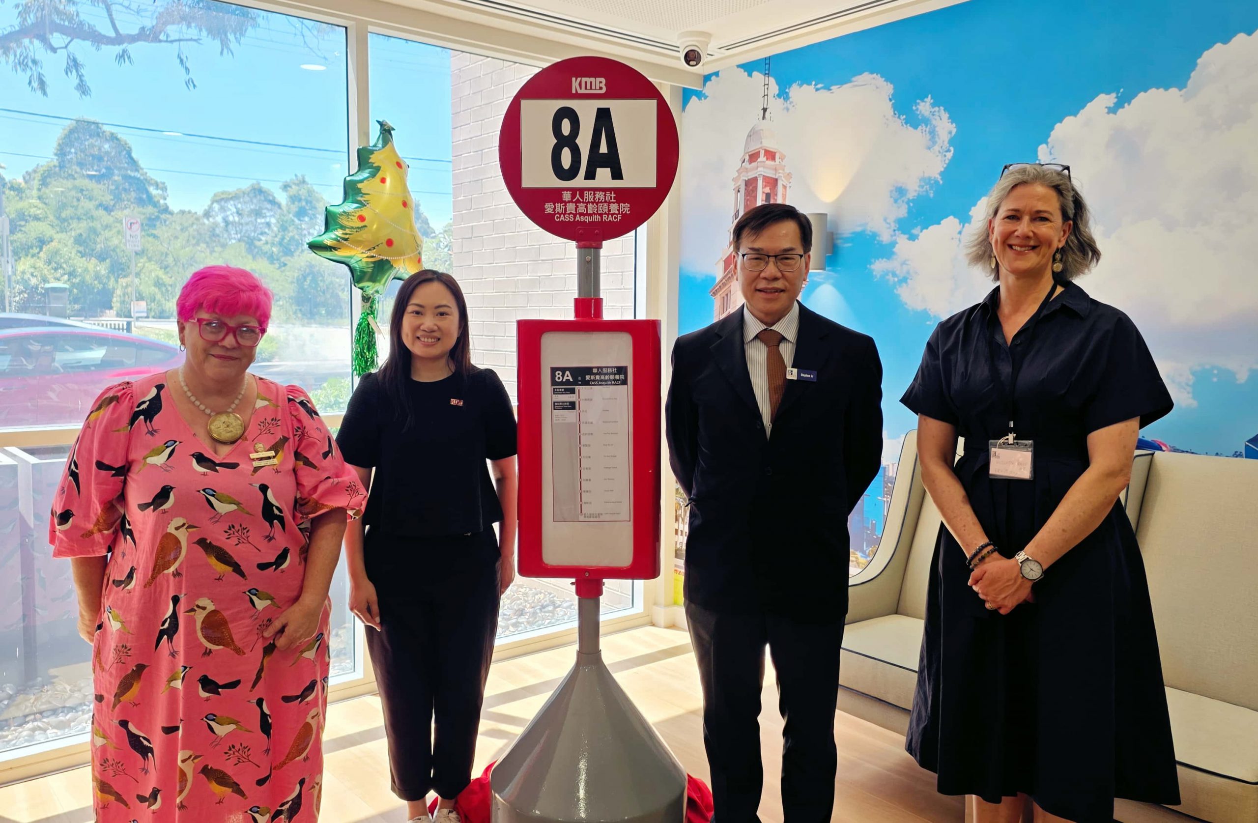 典禮的另一亮點,是香港九龍巴士(KMB)捐贈、極具香港特色的「巴士站牌」的正式揭幕。九龍巴士顧客體驗部主管吳家敏女士,專程自香港赴澳出席。她表示:「許多香港長者對巴士都有著深厚的情感。繼2023年於華人服務社墾思(Campsie)頤養院設置首個『關懷站牌』,我們很高興能再次與華人服務社合作,把另一個站牌帶到愛斯貴頤養院。」通過同步直播,未能親臨現場的頤養院長者們,亦能一同參與。