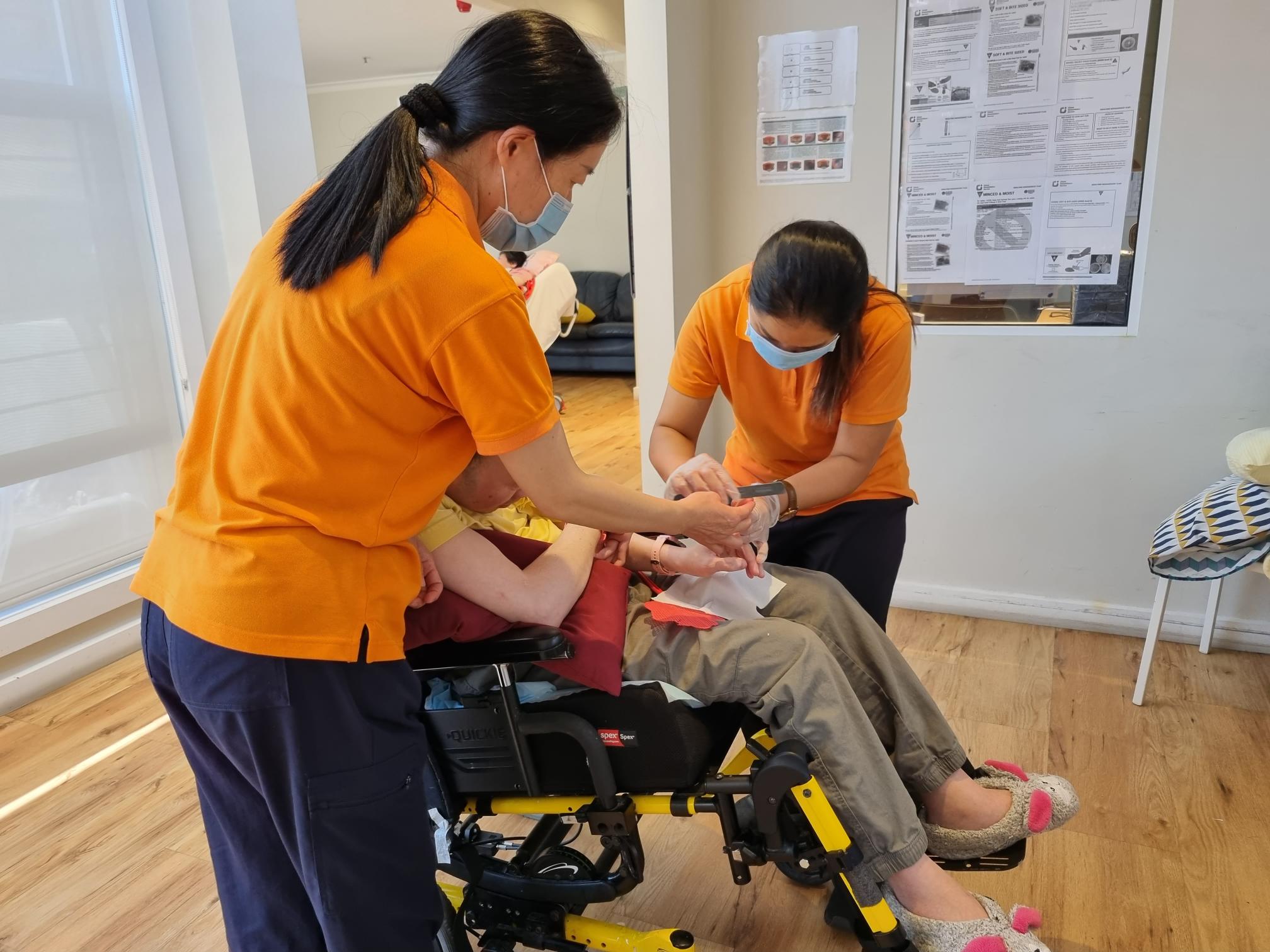 (圖:華人服務社殘障服務部工作夥伴在照顧參與「國家殘障保險計劃」的客戶)