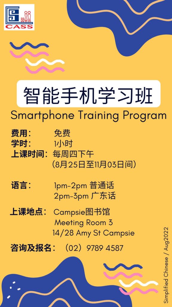 悉尼訊 華人服務社將於墾思圖書館(Campsie Library) 舉辦一個智能手機學習班,希望藉此幫助到更多華裔民眾。該學習班定於8月25日(周四)開課,開設普通話班及廣東話班,費用全免。