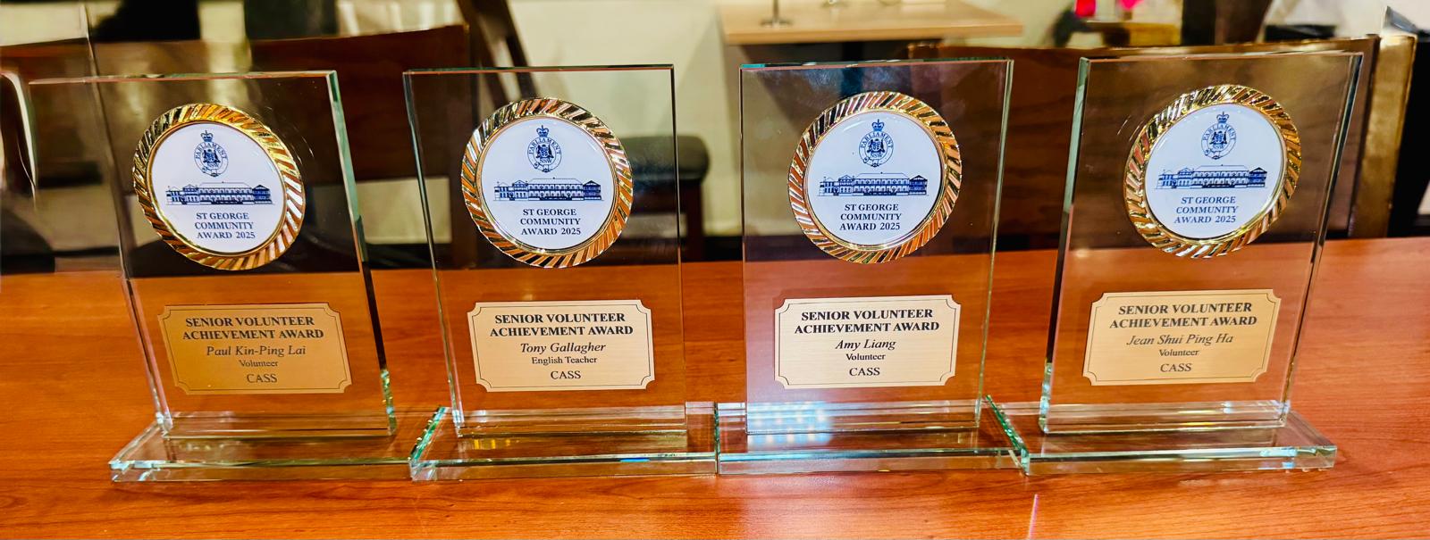 我們華人服務社(CASS)共有四位優秀義工榮獲殊榮,分別是葛騰(Tony Gallagher)、梁婉明(Amy Liang)、夏瑞萍(Jean Shui Ping Ha)及賴健平(Paul Kin-Ping Lai)。他們多年來默默付出,熱心服務,充分展現了社區關懷與奉獻的精神。