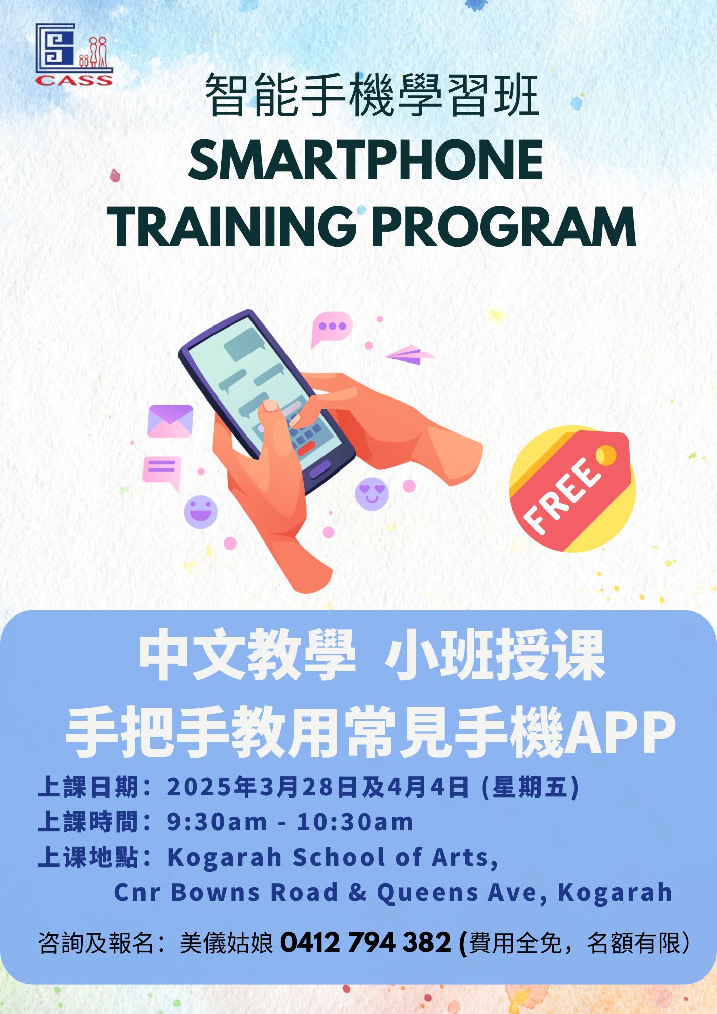 為了讓居住在悉尼南區的長者們更好地掌握手機的使用技巧!我們華人服務社推出智能手機學習班,費用全免,讓長者們在輕鬆愉快的環境中,學習使用手機的各種實用功能。